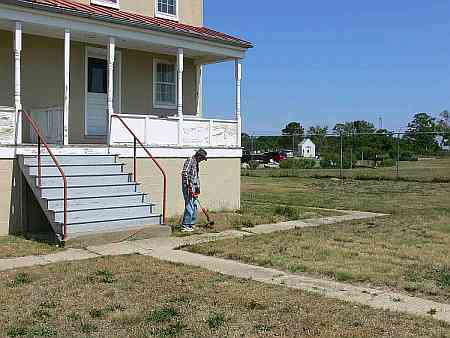 Chesapeake Chapter Volunteer Cecil Shepard works to clean up the lighthouse grounds.